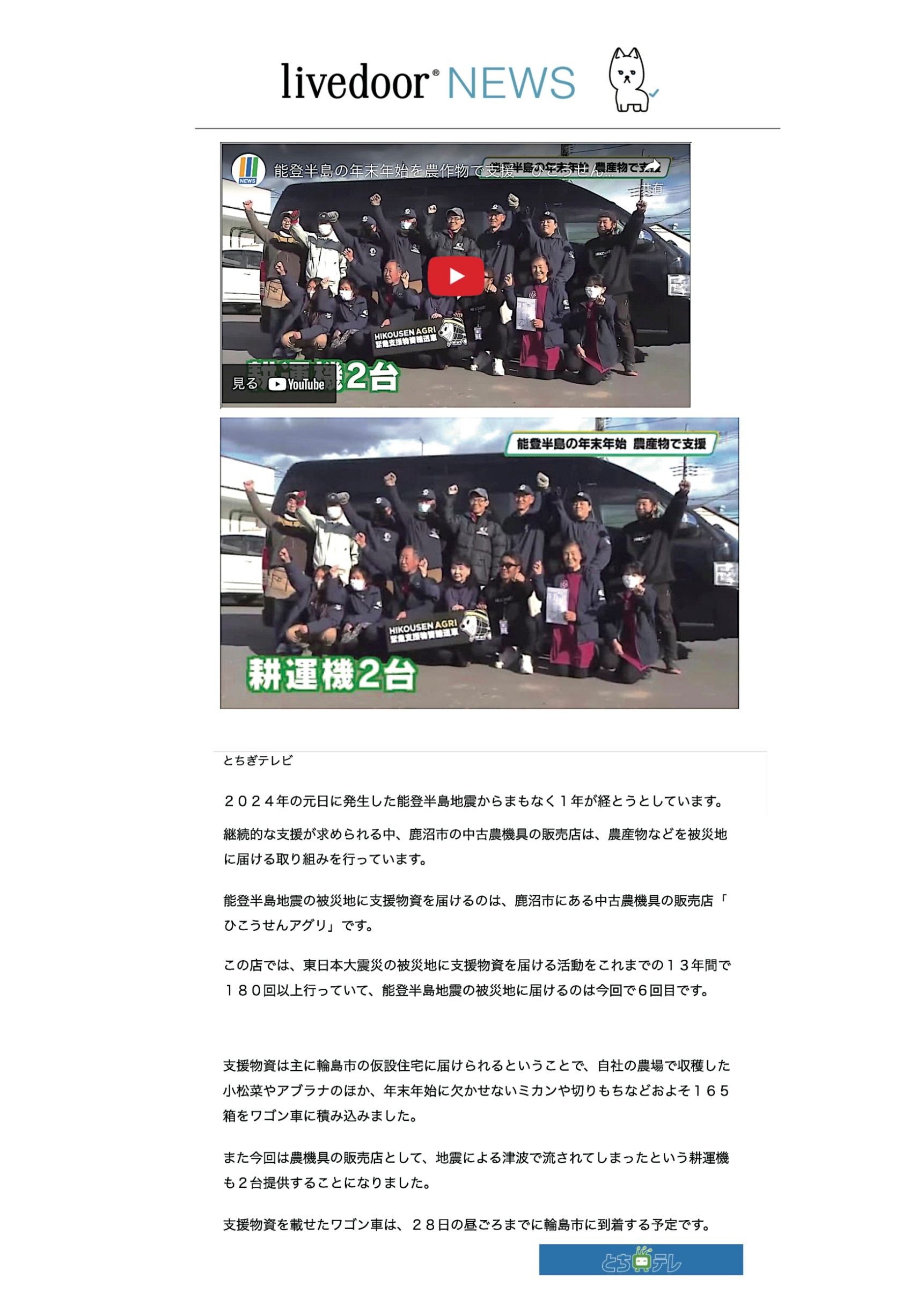 【とちぎテレビ】 能登半島の年末年始を農作物で支援
