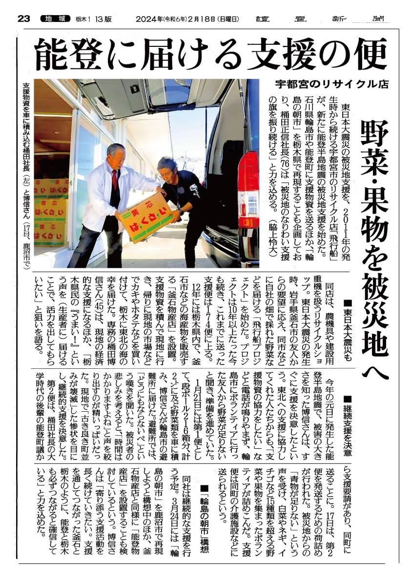 【下野新聞】能登の被災地に育てた野菜を運搬
